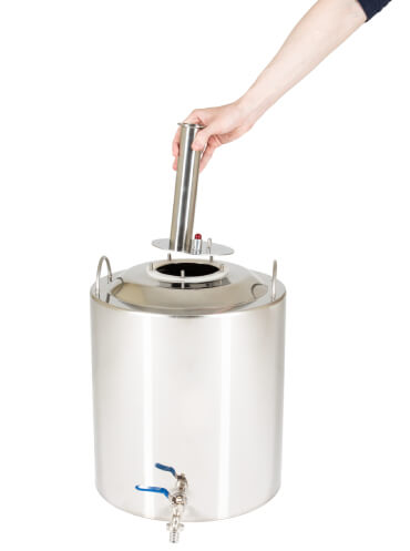 Широкие соединительные трубки диаметром 18 мм и спускной клапан гарантируют полную безопасность при перегонке. Закупорка исключена.